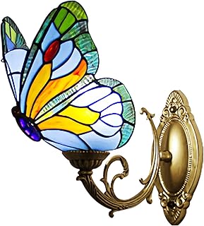 Tiffany Style Wandleuchte, European Pastoral Retro Glasmalerei Handgefertigte Schmetterling Wandleuchte, Flur Schlafzimmer Cafe Bar Blau Wandleuchte E27, Singlehead