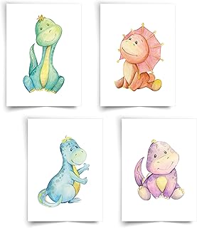 Donari ® - Mit Liebe gestaltetes 4er Set Poster für Kinder in A4 - Wunderschöne Poster für das Kinderzimmer - Deko für das Kinderzimmer - Dinosaurier Poster (Dino Set)