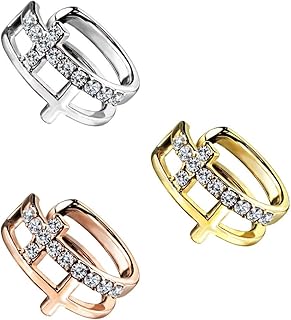 Ohr-klemme DOPPEL KREUZ PAVÉ ZIRKONIA clear Ohringe Ohr-ringe Ohr-clip Fake-Piercing Messing Silber Gold Roségold