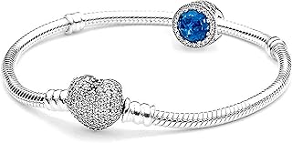 925 Silber Herz Pave Silberne Schlangenkette mit Kristallen für Mädchen Damen Kinder Armband Starter Set Bracelet Heart Paved Crystals Kit de démarrage pavé cristaux Argent 16 18 19 20 21 cm
