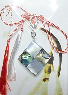 IohanaSchmuck Martisor, Charm, Anhänger aus echtem Perlmutt und Paua Muscheln (Abalone), Farbe: Perlmutt, Regenbogen, 18x18mm, Gesamtlänge 42mm, handmade, eigene Herstellung