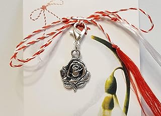IohanaSchmuck Martisor, Charm, Anhänger als Rose aus Metall, 14x14mm, Gesamtlänge 32mm, handmade, eigene Herstellung