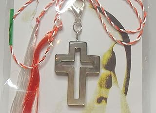 IohanaSchmuck Martisor, Charm, Anhänger aus echtem Perlmutt als Kreuz, 18x25mm, Gesamtlänge 42mm, handmade, eigene Herstellung