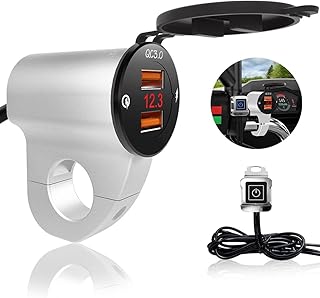 Kriogor Motorrad USB Ladegerät, Dual QC 3.0 USB Anschluss Adapter, Wasserdichtes Schnellladegerät für Telefon Tablet GPS
