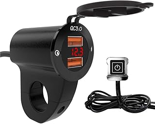 GOURIXIN Motorrad Handy Ladegerät mit Voltmeter und Sicherung, Wasserdicht Motorrad USB Steckdose LadegeräT Mit Schalter, verwenden (Lenkerdurchmesser 2,2 cm)