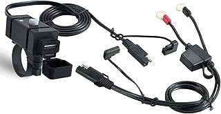 CAMWAY Motorcycle 2.1A Waterproof USB Charger Kit SAE to USB Adapter Cable Charger for Phone Tablet GPS : Amazon.de: Electronics & Photo Title: CAMWAY 12V/24V 2.1A Motorcycle SAE to USB Phone GPS Charger Kit Cable Adapter Inline Fuse Waterproof Compatible for iPhone / iPad / iPod, Samsung, HTC With 2.1A max. output, the USB port allows you to charge your electronic device, quicker than the traditional 1A one. Total length of 47″ ring-terminal extension cable is long enough