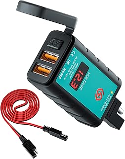 SAE auf USB Adapter Quick Off Stecker Wasserdicht Motorrad mit Dual USB Ladegerät 2.4A und 2.4A (4,8 A) und Voltmeter für Smartphone, GPS Tablet