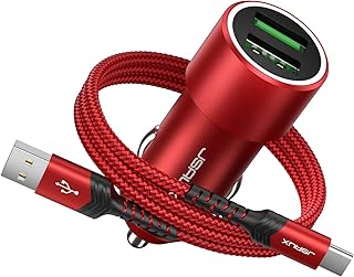 Zigarettenanzünder USB Ladegerät 36W/12V Schnellladung, JSAUX Dual QC3.0 Kfz Ladegerät, Metal Auto USB Adapter Ladegerät mit USB-C Kabel 1M Kompatibel mit Samsung Galaxy S10/S9/S8, Note, iPhone-Rot