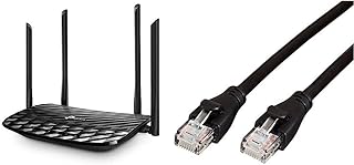 TP-Link Archer C6 Dualband Gigabit WLAN-Router (867Mbit/s 5GHz + 450Mbit/s 2,4GHz,4 Gigabit LAN-Port,Mu-MIMO,IPTV,VPN,4 externe Antennen) & Amazon Basics Ethernet-Netzwerkkabel, RJ45,Cat6, 1.000Mbit/s