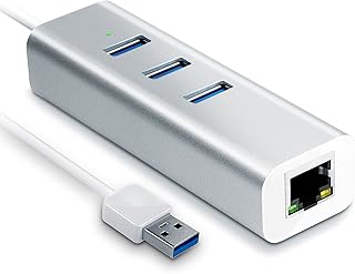 Amazon Basics – USB-3.0-Hub mit 3 x USB-3.0-Ports und 1 x RJ45-Gigabit-Ethernet-Port, Aluminium, silberfarben