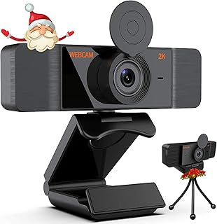 Webcam mit Mikrofon und Stativ 2K HD Webcam für PC Laptop Desktop Webcam mit Abdeckung USB Computer Kamera für Videoanruf Aufnahme Studieren Web Stream Camera Konferenzen Kompatibel mit Windows Mac