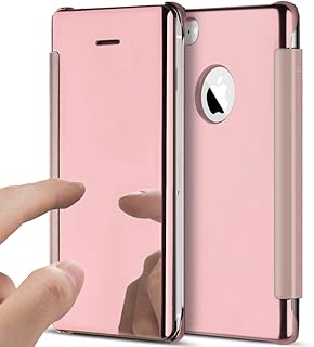 Kompatibel mit iPhone 5S/5 Hülle,iPhone SE Hülle,Überzug Spiegel Durchsichtig Handyhülle Flip Clear View Ständer Magnetisch Handy Tasche Hard Case Hülle Schutzhülle für iPhone SE/5S/5 Hülle,Rose Gold
