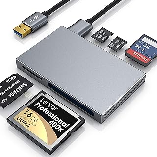 Super Speed USB Kartenleser, 5 in 1 Aluminium USB 3.0 Card Reader mit paraller Auslesungsfunktion USB Adapter für SD, CF, Micro SD, SDHC, SDXC, Micro SDHC, Micro SDHC, MS Pro usw