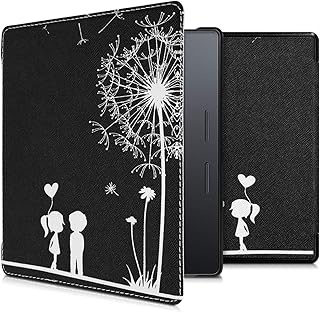 kwmobile Klapphülle kompatibel mit Amazon Kindle Oasis 9. Generation - Hülle eReader - Pusteblume Love Weiß Schwarz