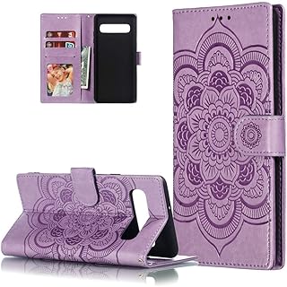 HMTECH Galaxy S10 Plus Hülle,Für Samsung Galaxy S10 Plus Handyhülle Prägung Mandala-Blume Flip Case PU Leder Cover Magnet Schutzhülle Ständer Handytasche für Samsung Galaxy S10 Plus,LD Mandala Purple