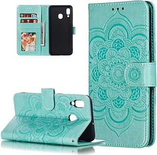 HMTECH Galaxy A20S Hülle,Für Samsung Galaxy A20S Handyhülle Prägung Mandala-Blume Flip Case PU Leder Cover Magnet Schutzhülle Tasche Skin Ständer Handytasche für Samsung Galaxy A20S,LD Mandala Green