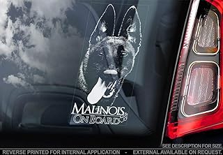 Belgische Malinois - Autoaufkleber - Hund Schild Fenster, Stoßstange Aufkleber Geschenk - V010 - Weiß/Klar - Interne Rückwärtsgang Aufdruck, 220x100mm