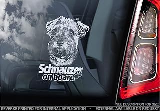 Sticker International Schnauzer - Autoaufkleber - Hund Schild Fenster, Stoßstange Aufkleber Geschenk - V003 - Weiß/Klar - Externe Außen Aufdruck, 150x100mm
