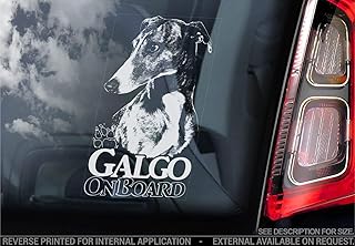 Sticker International Galgo - Autoaufkleber - Hund Schild Fenster, Stoßstange Aufkleber Geschenk - V002 - Weiß/Klar - Externe Außen Aufdruck, 180x100mm