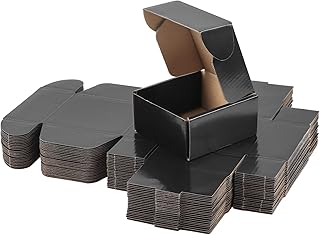 Hoikwo 25 Stück 6x4x3 kleine Versandkartons für kleine Unternehmen, schwarze Verpackungen aus Karton, Umzugskartons