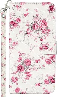 Yagook 3D PU Leder Hülle Muster Schutzhülle Brieftasche Ledertasche Wallet Handyhülle mit Kartensteckplatz Ständer Klapphülle Etui Flip Case Cover Kompatibel mit Samsung Galaxy S21 Plus - Rose