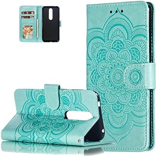 HMTECH Nokia 3.2 Hülle,Für Nokia 3.2 Handyhülle Prägung Mandala-Blume Flip Case PU Leder Cover Magnet Schutzhülle Tasche Skin Ständer Handytasche für Nokia 3.2,LD Mandala Green