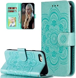 LEMAXELERS iPhone 8 Plus/iPhone 7 Plus Hülle,iPhone 8 Plus Handyhülle Prägung Mandala-Blume Flip Case PU Leder Cover Magnet Schutzhülle Tasche Ständer Handytasche für iPhone 8 Plus,LD Mandala Green