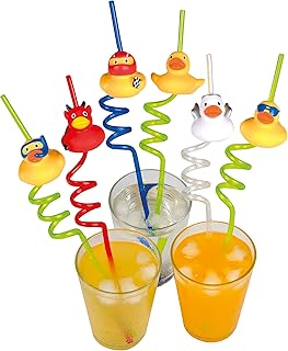 wohnen-freizeit 6er Set Strohhalme, Trinkhalme Spirale mit Ente Sortiert, Kinderstrohhalm Strohhalm, Kindergeburtstag, Mitbringsel für Kinder