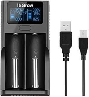 iEGrow 18650 Batterieladegerät, LCD-Akku-Ladegerät mit USB-Anschluss für 18650, 26650, 18500, 18350, 17670, 17500, 16340, 14500, 10440 3,7 V Li-Ion Akku, 2 Steckplätze