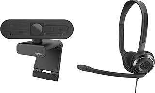 Hama Webcam 1080p Full HD mit Stereo Mikrofon (PC Webcam mit Autofokus und intelligenter Belichtung für Homeoffice und Gaming, 360 Grad schwenkbar, mit Kamera-Abdeckung) & Sennheiser PC 8 USB Headset