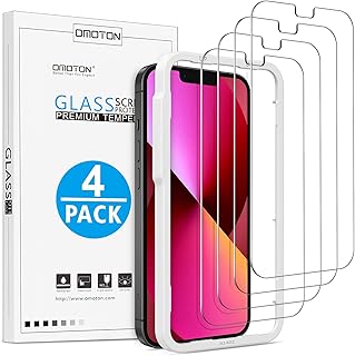OMOTON 4 Stück Schutzfolie Kompatibel mit iPhone 13 Mini/iPhone 12 Mini Panzerglas, 5.4 Zoll, 9H Härte, HD Klar, Blasenfrei,mit Positionierhilfe