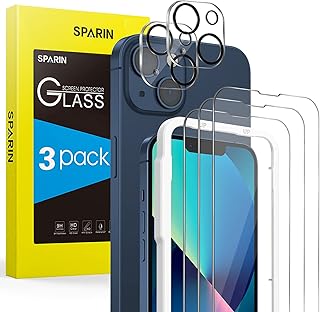 SPARIN Panzerglas für iPhone 13 6,1 Zoll, 3 Stück Schutzfolie und 2 Stück Kameraschutz, 9H Härte, mit Positionierhilfe