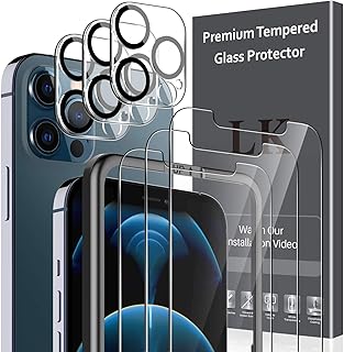 LK 6 Stück Schutzfolie kompatibel mit iPhone 12 Pro Max Panzerglas, 6.7 Zoll, 3 Schutzfolie und 3 Kamera Folie, 9H Härte Glasfolie, HD Klar Displayschutz, Kratzen, Blasenfrei